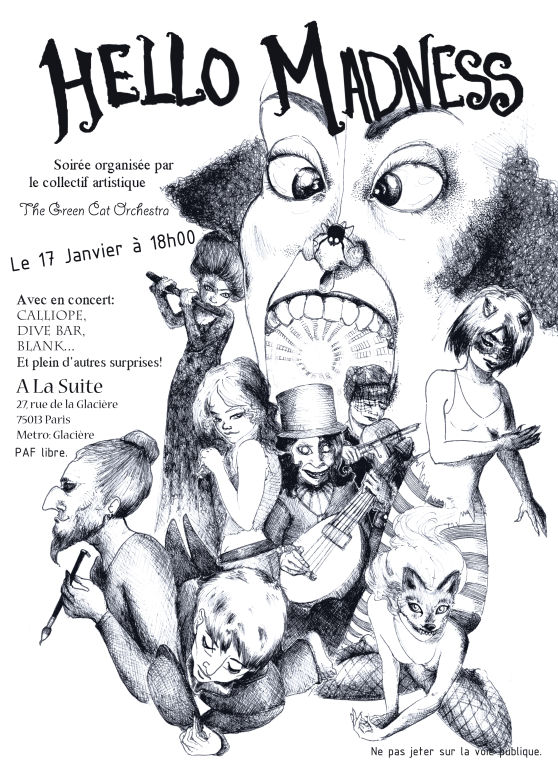 Une soirée organisée par le collectif artistique The Green Cat Orchestra, le samedi 17 janvier à partir de 18 heures !